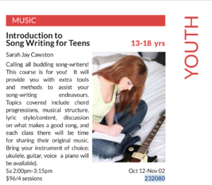Introducing 2 brand new classes for the fall for budding musicians: Brass Instrument tune up for Band students and Song-Writing for Teens! Both classes will take place at Douglas Park Community Centre in Vancouver 801 West 20th Ave, Vancouver
