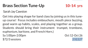 2. Brass Instrument Tune-Up (for grade 6-8 band students) CLASS #232227